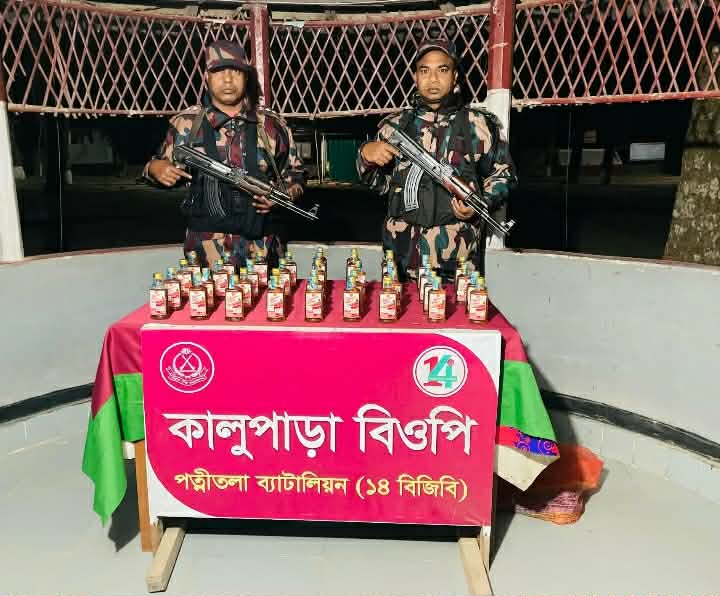 নওগাঁ সীমান্তে বিজিবি জওয়ানদের জন্য ভেস্তে গেল মদের বড়সড় চালান।