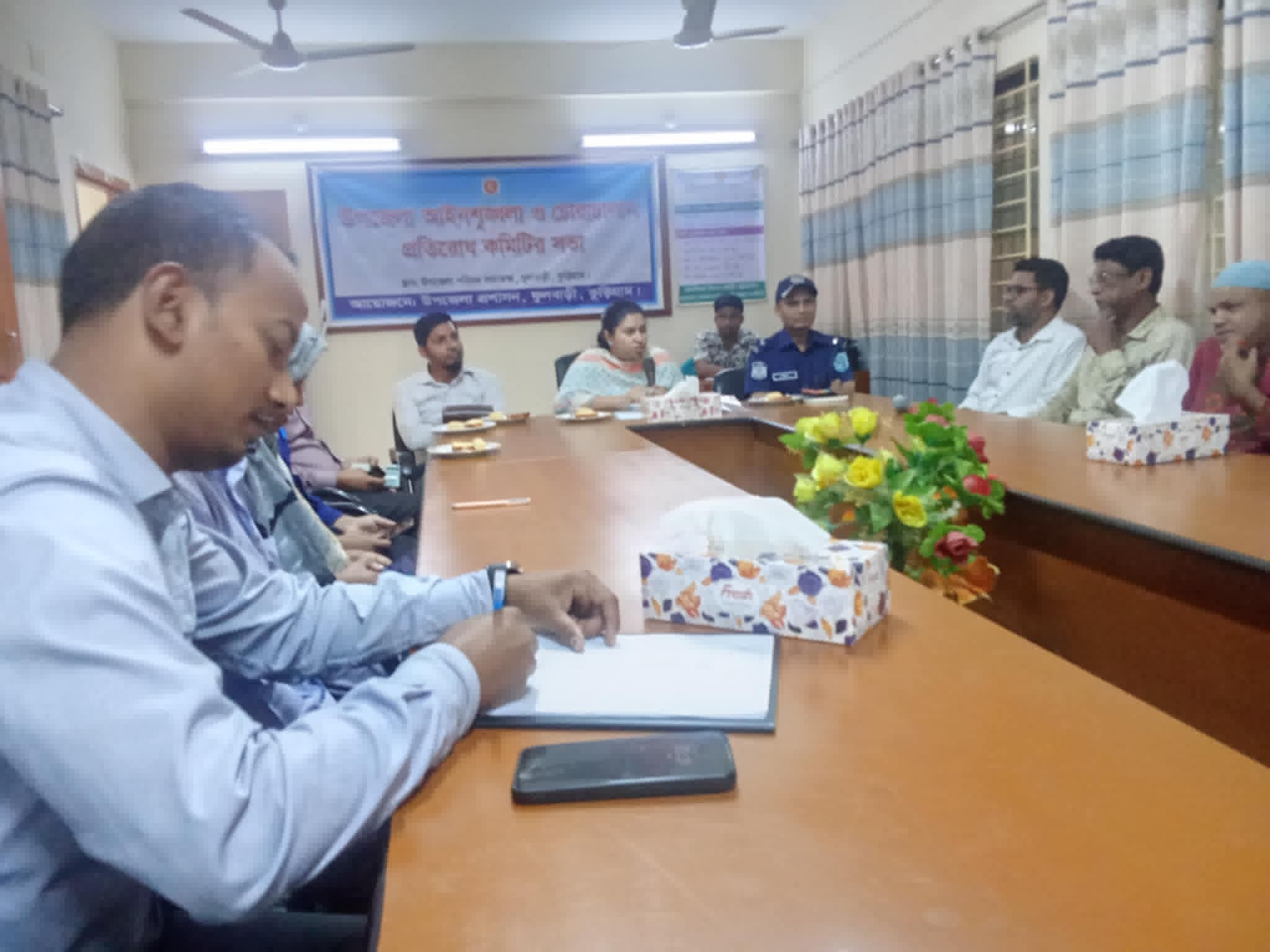 মাহবুব লিটু, ফুলবাড়ী(কুড়িগ্রাম)প্রতিনিধিঃ কুড়িগ্রামের ফুলবাড়ীতে উপজেলা আইন-শৃঙ্খলা ও চোরাচালান প্রতিরোধ কমিটির সভা অনুষ্ঠিত হয়েছে। বৃহস্পতিবার (৩০ এপ্রিল) সকাল ১১ টায় উপজেলা পরিষদ হলরুমে এ সভা অনুষ্ঠিত হয়। উপজেলা নির্বাহী কর্মকর্তা দিলারা আকতারের সভাপতিত্বে অনুষ্ঠিত সভায় বক্তব্য রাখেন, উপজেলা সহকারী কমিশনার (ভূমি) আনোয়ার হোসাইন, উপজেলা প্রাণিসম্পদ কর্মকর্তা ডাক্তার চন্দন কুমার সরকার, উপজেলা মৎস্য কর্মকর্তা হাফিজুর রহমান, ফুলবাড়ী থানার অফিসার ইনচার্জ (ওসি) মাহমুদ হাসান নাঈম,