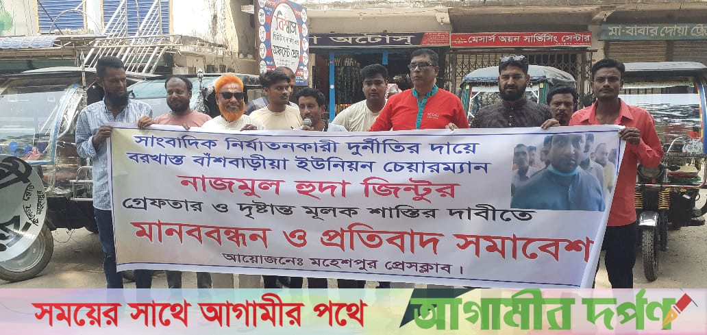 মহেশপুরে সাংবাদিক নির্যাতনের প্রতিবাদে মানববন্ধন ও প্রতিবাদ সভা অনুষ্ঠিত